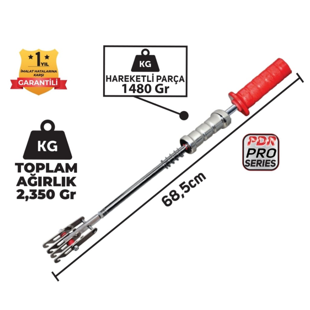 Set Pdr Kaporta Göçük Düzeltme Tokmağı Çift Yönlü Aslan Pençesi 4 Kancalı Pls Saplı 2,350Kg 68,5 cm